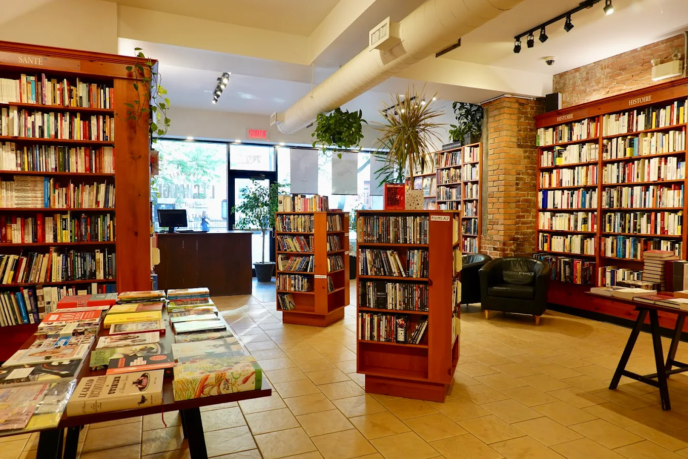 It carries graphic novels, literature, nonfiction, and art books in both English and French, with a strong focus on indie presses and local creators. It also has a neat little sunlit reading nook by the storefront, which only ups the grand, almost operatic vibe you get upon walking in.