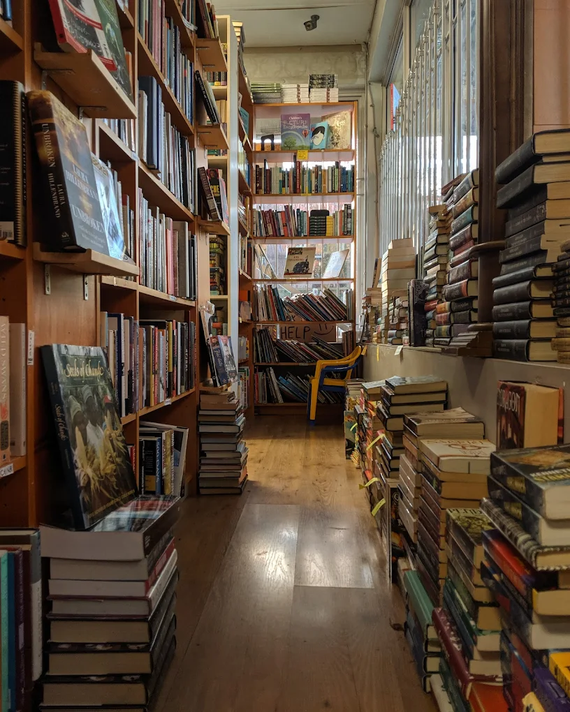 The interior has a warm and welcoming vibe, housing wooden shelves, eclectic furniture, and esoteric decorations. It also, consequently, makes a pleasant setting for talks, workshops, and author events.