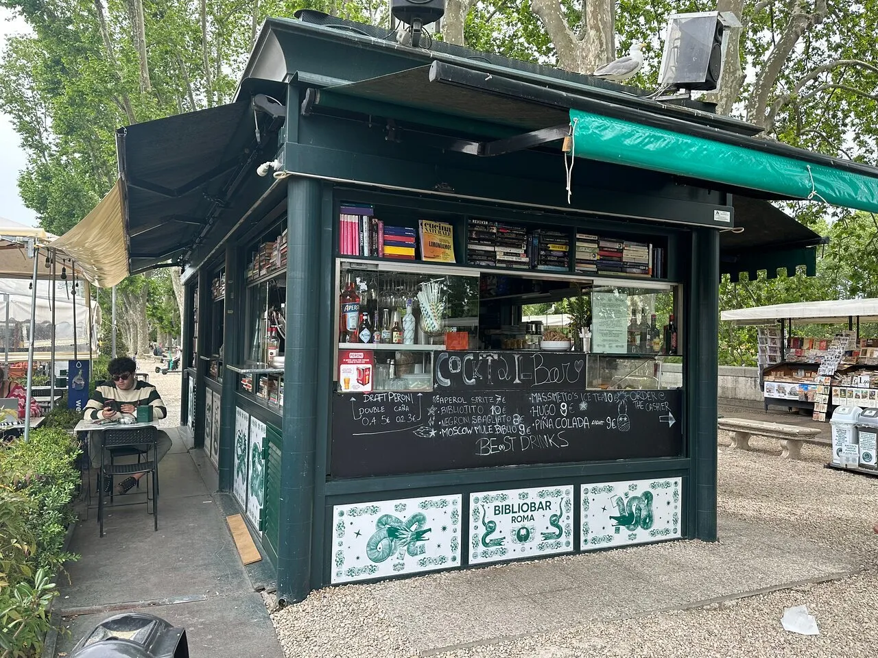While not all cafés have to be indoors, Biblio Bar Roma is a rare example of an outdoor book café. Seated right next to Castel Sant’Angelo along the Tiber River, this café is set up like an outdoor food court—except with only one stall and lots and lots of books.
