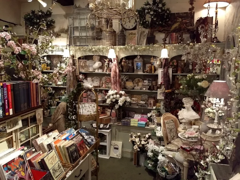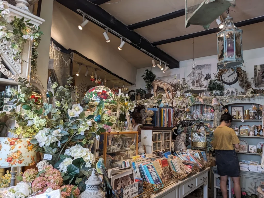 Arcadia is a small, independent book and stationery shop known for its vintage, whimsical atmosphere. Of course, just saying that might not prepare you for the reality, which is that it is an equal blend of fairytale forest and bookstore, replete with delicate antiques, plants (both fake and real), and aged wooden shelves painted in pale green.