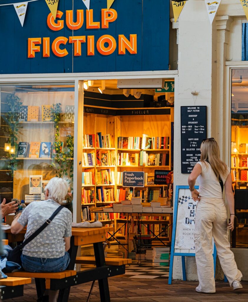 With a name like “gulp,” you get three guesses as to what this bookshop does in addition to selling books. Tucked inside Oxford’s historic Covered Market, this bookshop-café-bar sells coffee and beer alongside a selection of secondhand books. It has a casual, relaxed atmosphere, encouraging patrons to linger and chat while browsing.