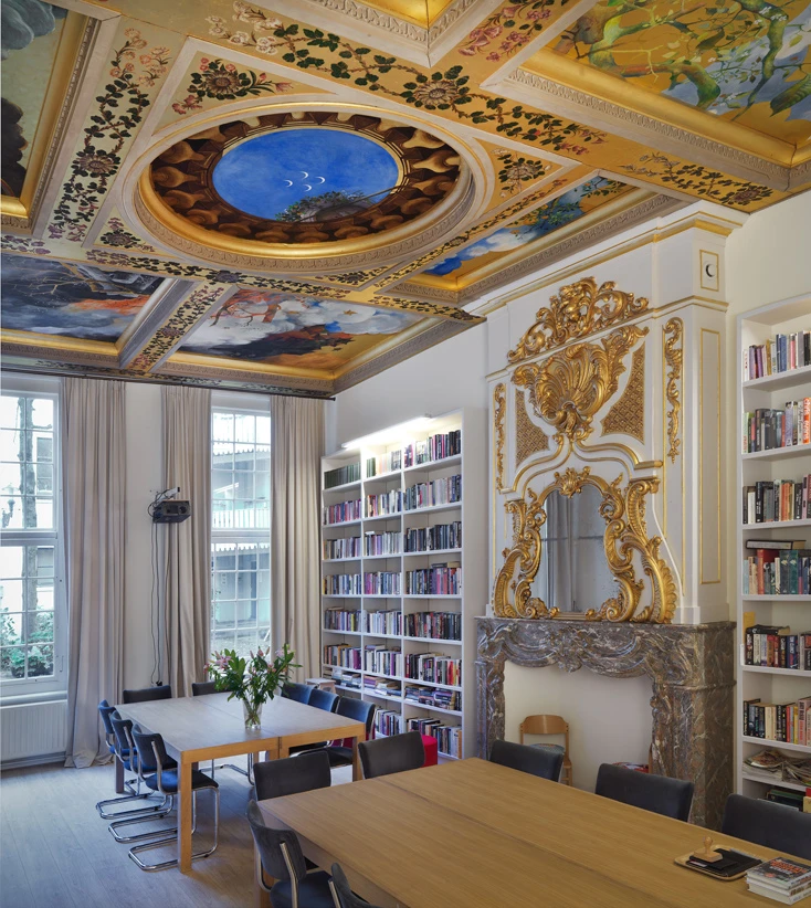 It now serves as a cultural and literary meeting space for the community, offering a public reading room and book exchange library. The collection is mainly in Dutch, with some English and even Hebrew titles. Visitors can also admire the room’s painted ceilings and opulent mantlepiece.