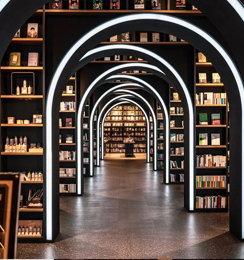 Seated in Seoul’s Lotte World Mall, Arc N Book is a beautifully designed bookstore most famous for its eye-catching interior design. Of special note are the chic, asymmetric book tunnel with neon lighting and the name of the store itself, shown in thick, hipster font in front of an archway-shaped bookshelf.