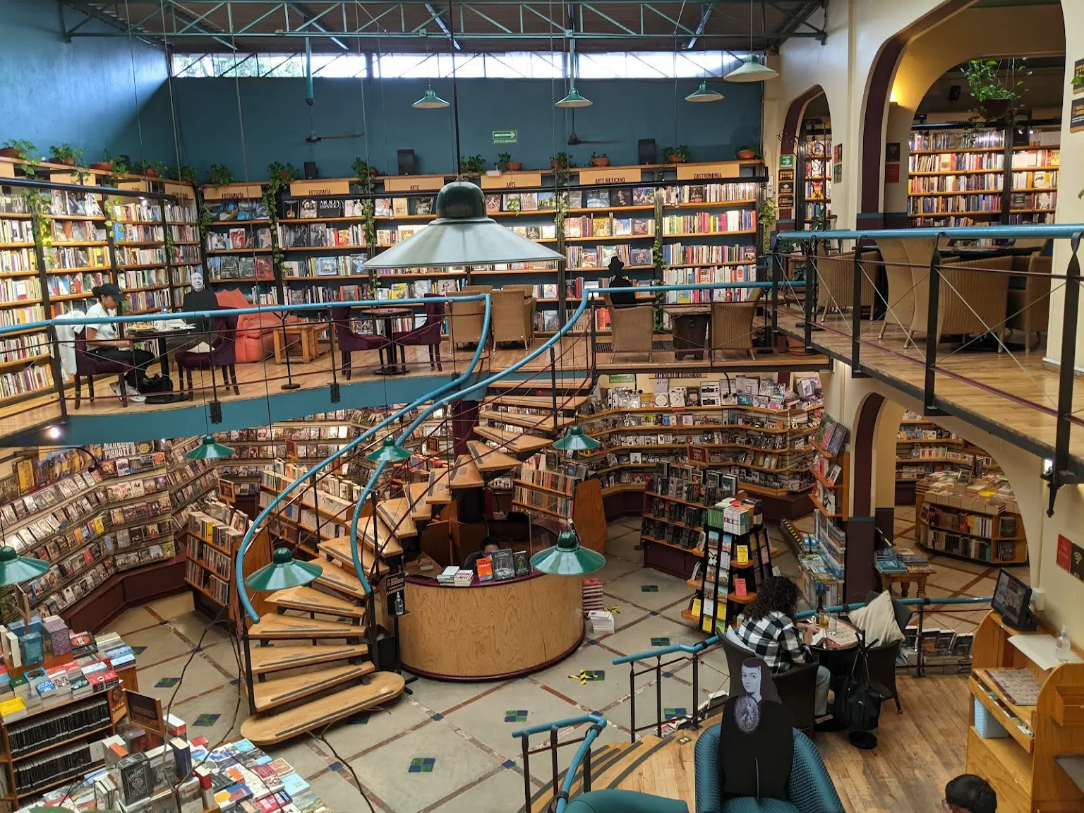 Cafebrería El Péndulo Polanco is a lush, multi‑level bookstore and café located in Mexico City’s upscale Polanco neighborhood, combining shelves of Spanish and some English titles with a full restaurant and bar.