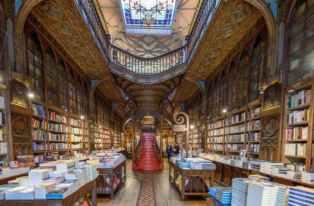 We have to start this list with Livraria Lello, the bookstore that took first place in our 2023 Most Beautiful Bookstores in the World awards. Located in Porto, it immediately pulls you in with its iconic scarlet staircase, an architectural centerpiece that leads to the upper level lined with towering bookcases.