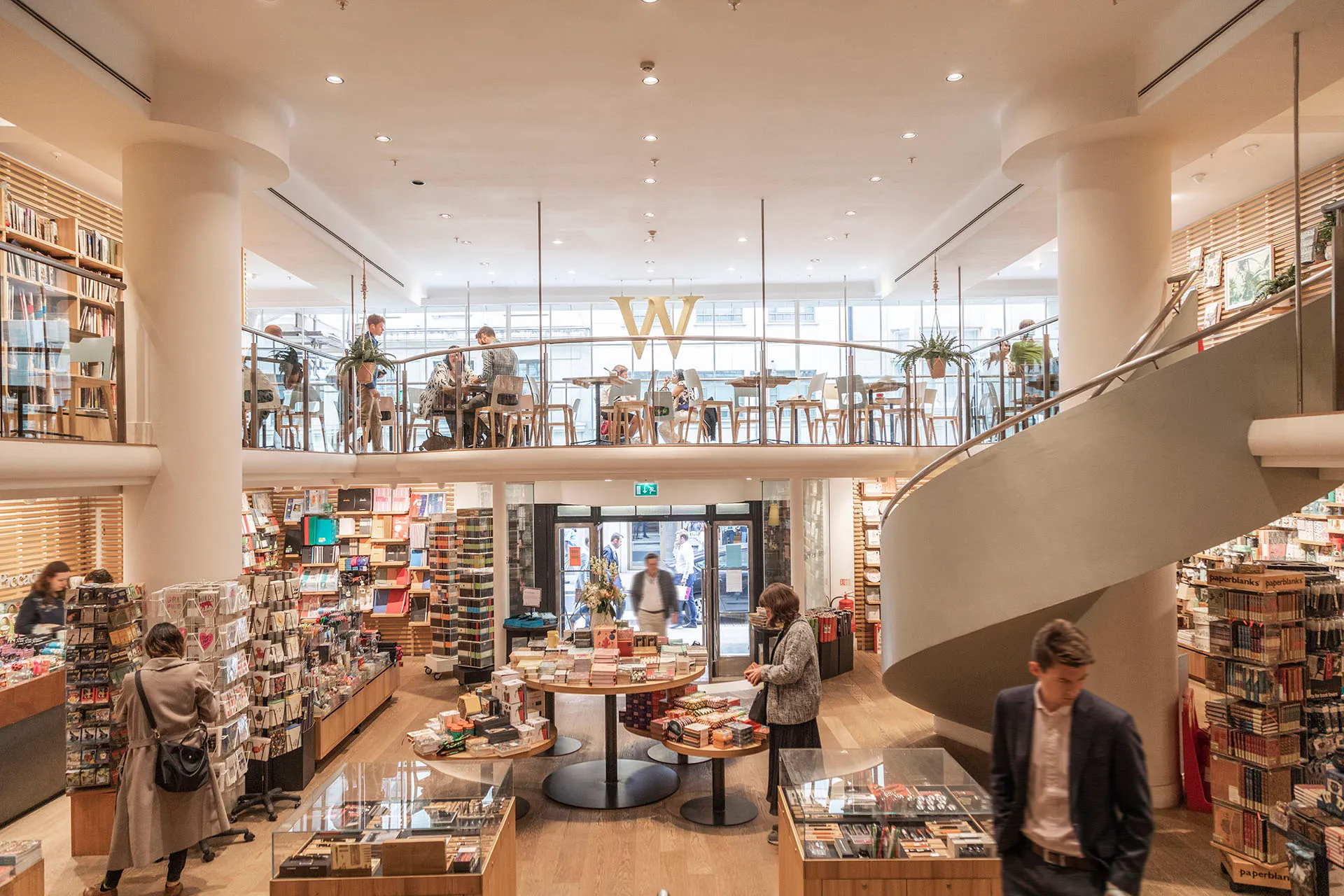 Don’t miss the café on the upper level. It’s the perfect spot to take in a view of the store and appreciate its striking design.