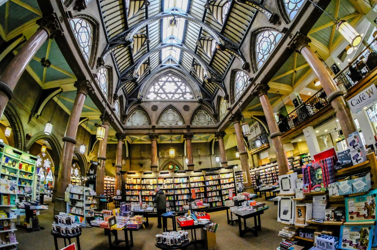 The idea of a chain bookstore might put some people off, but Waterstones Bradford is different. Situated in the city’s Victorian Gothic Wool Exchange Building, the ornate pillars, intricate wall detailing, and polished architectural touches give it a distinctive look.
